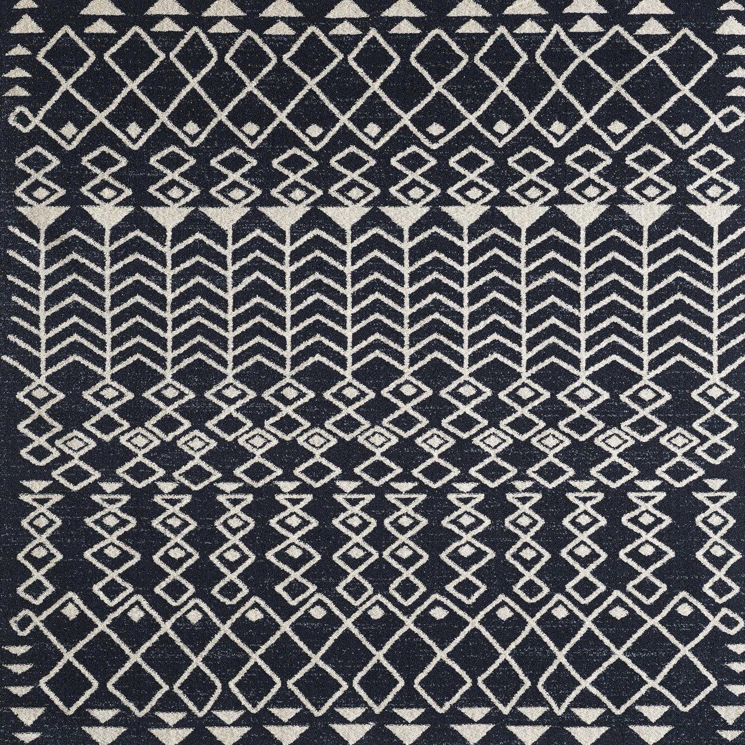 Navy/Cream 5x7 Southwestern Rug 5'x7' Rectangular Cream Oriental Modern Contemporary Rectangle Polypropylene Latex Free Stain Resistant - Diamond Home USA