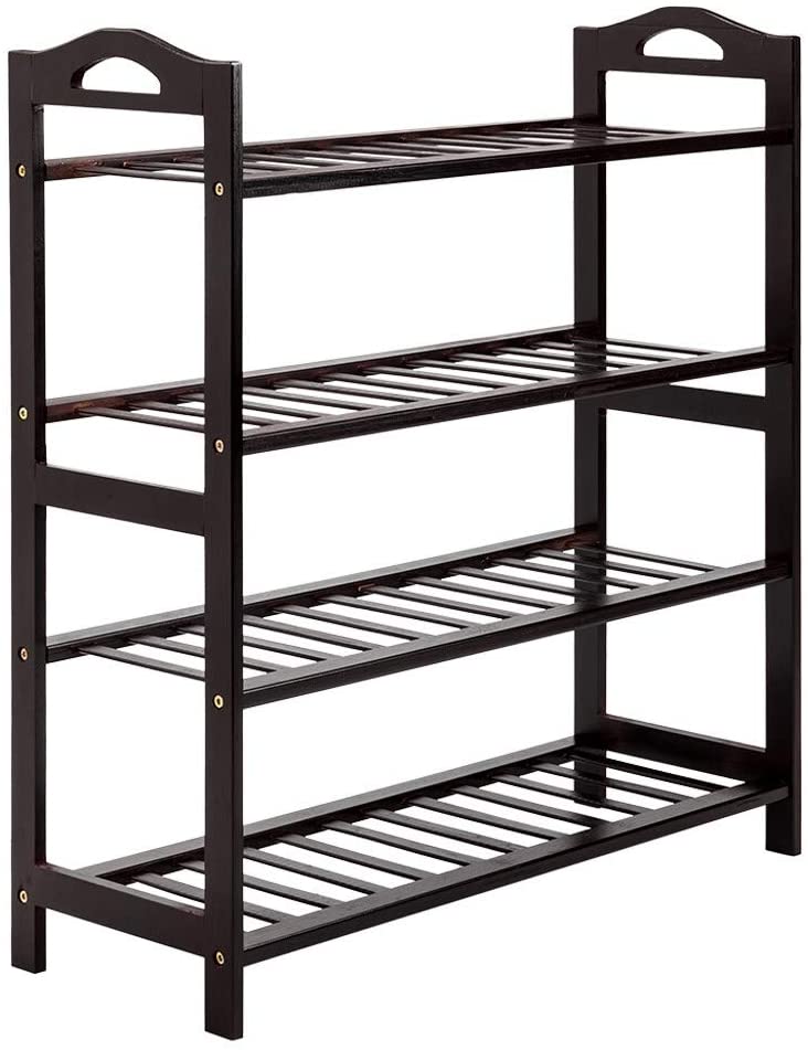12 Batten 4 Tiers Bamboo Shoe Rack Shelves Brown Wood