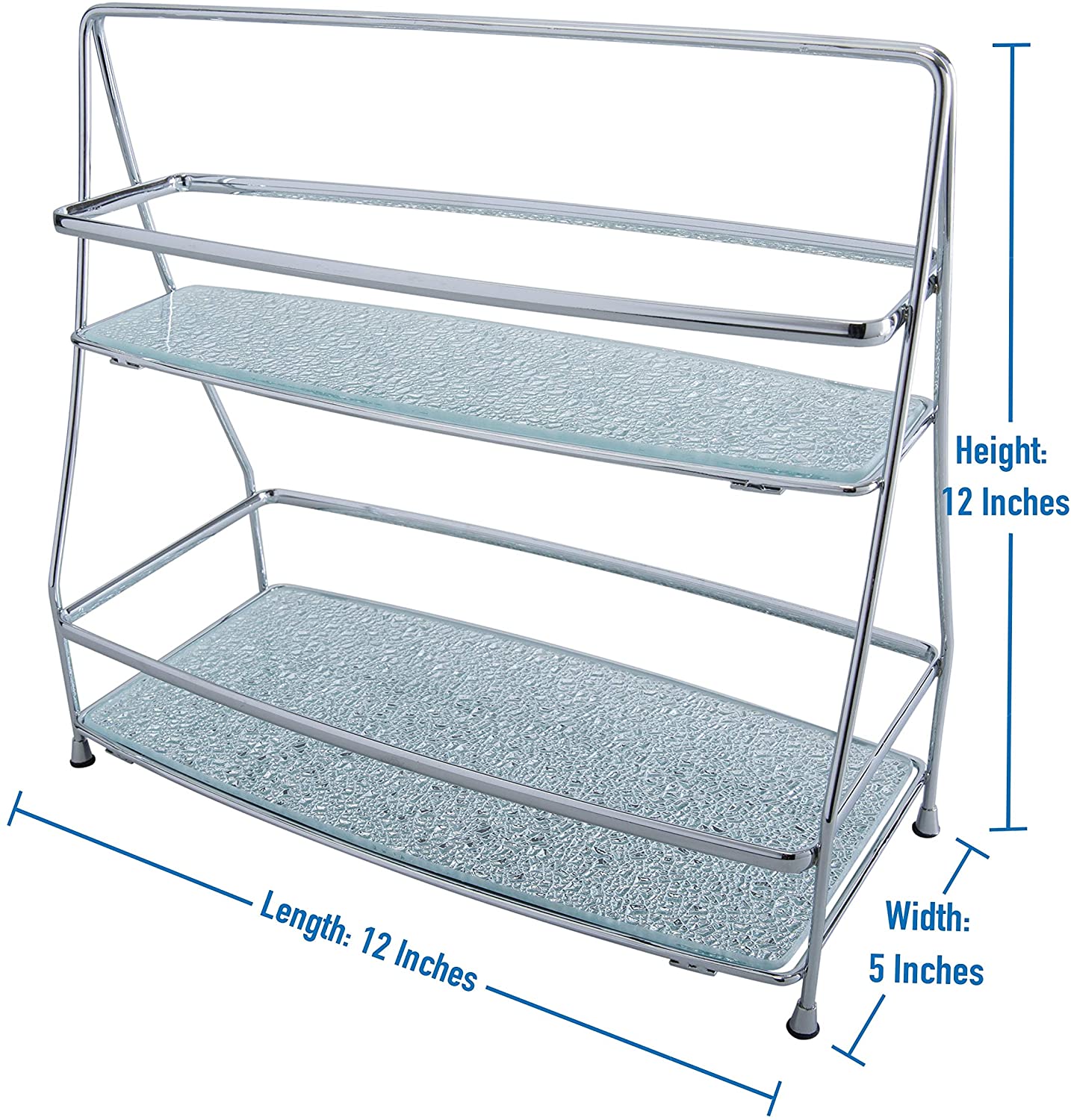 2 Tier Hammered Mirror Vanity Tray Tower Chrome 12 4"x