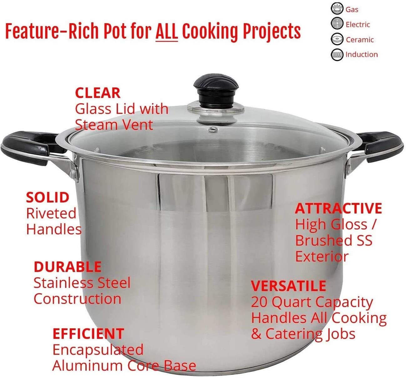 20 Qt Stainless Steel Tri ply Heavy Duty Gourmet Stock