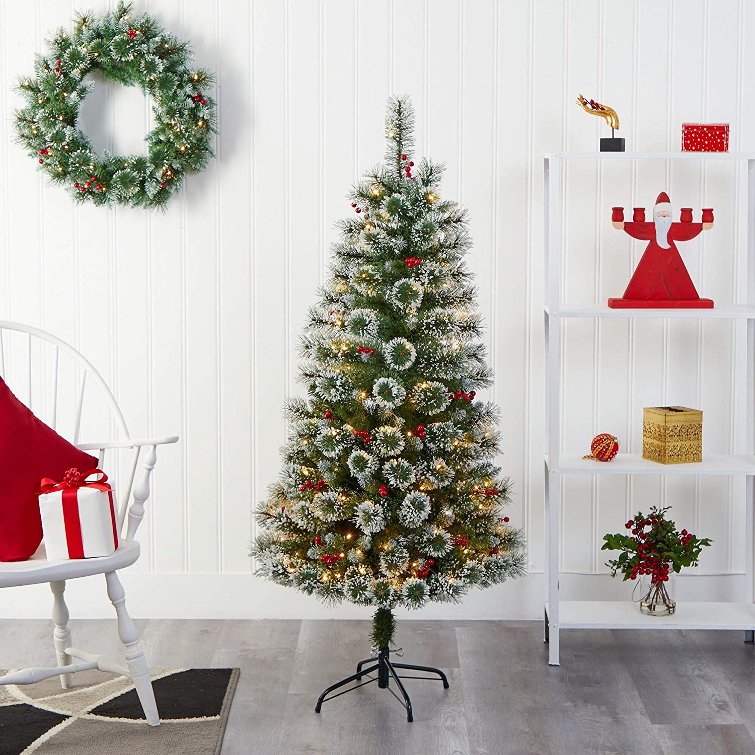• 5' Frosted Swiss Pine Christmas Tree With Clear Led Lights Green