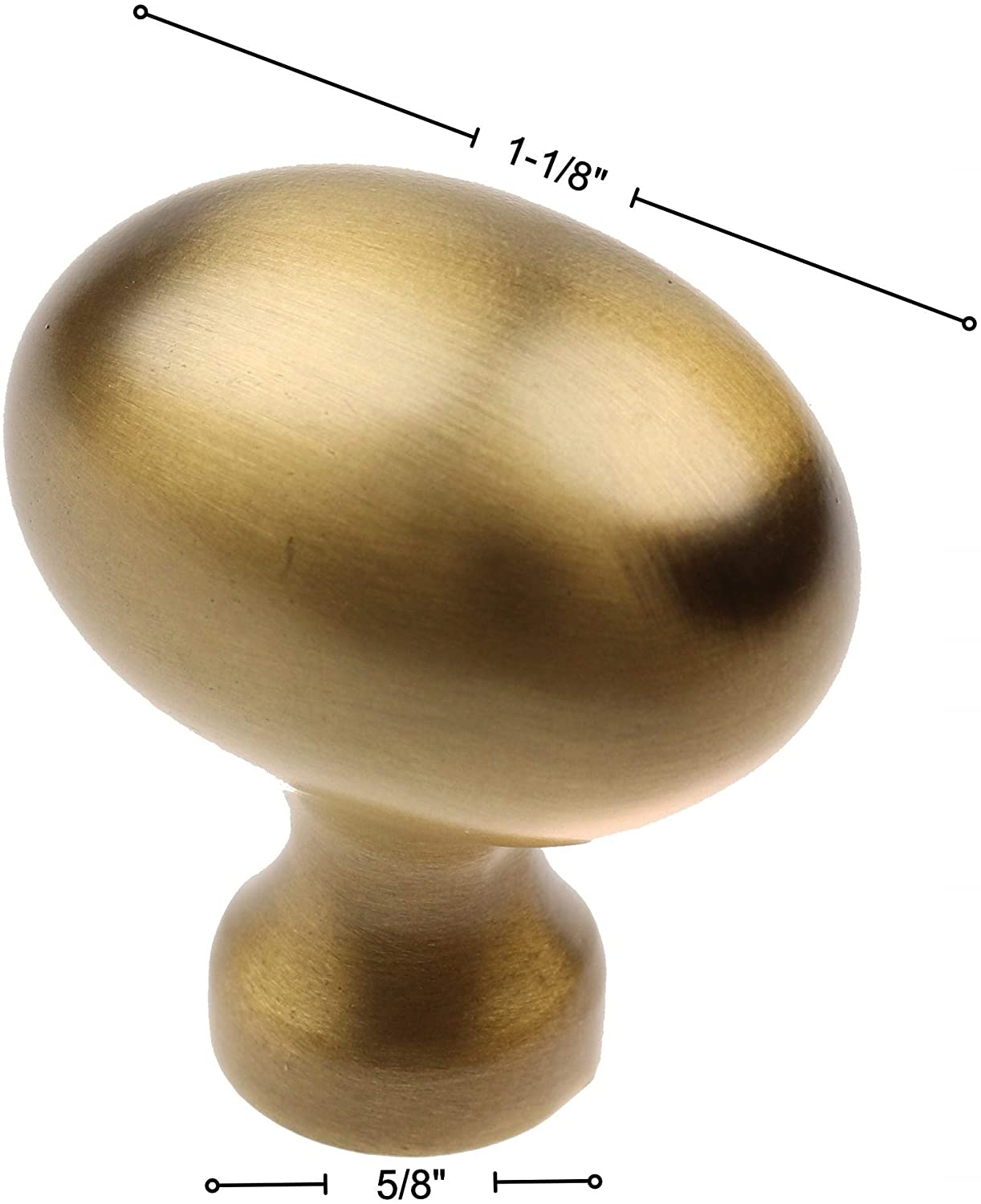 5 Pack 1 1/8 inch Oval Cabinet Knob Satin Gold