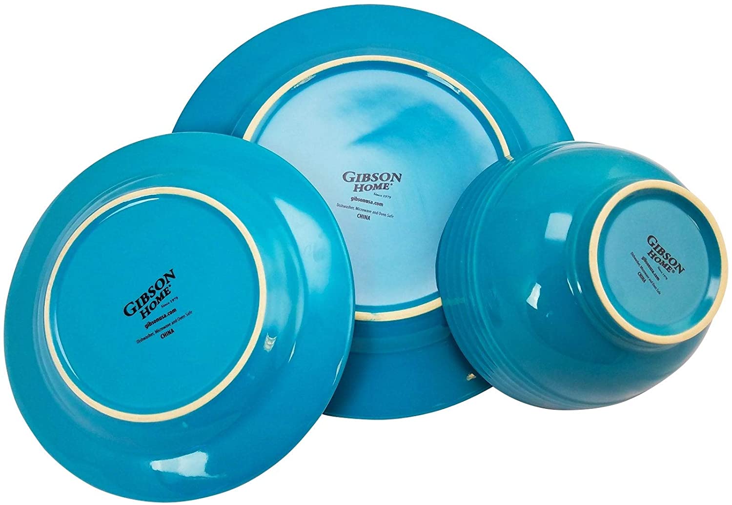 Banded Gloss 12 Piece Stoneware Dinnerware Set Turquoise Blue Casual