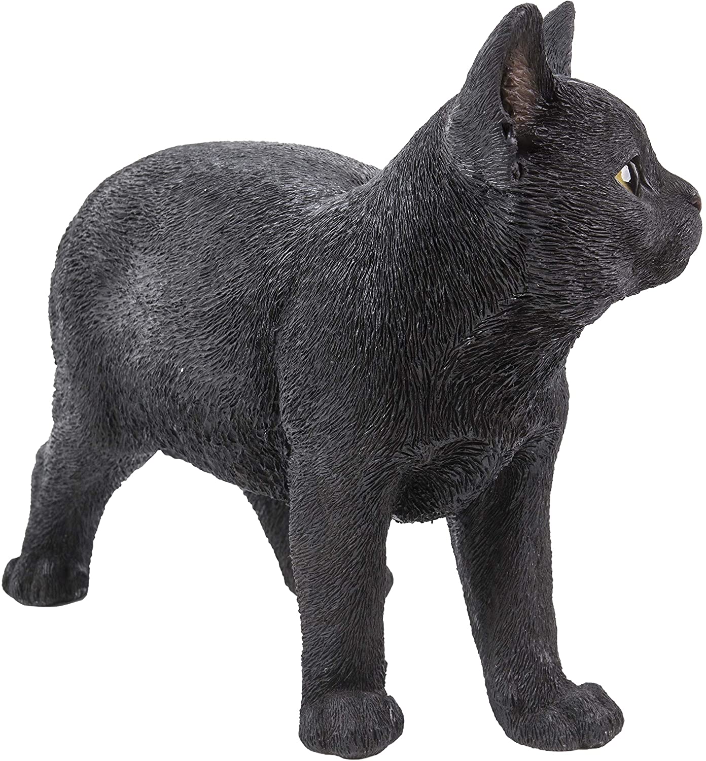 Black Cat Walking Looking Left Statue Polyresin - Diamond Home USA