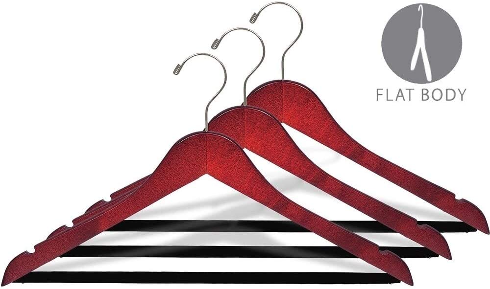 Cherry Finish Suit Hanger Black Velvet Non Slip Bar Box