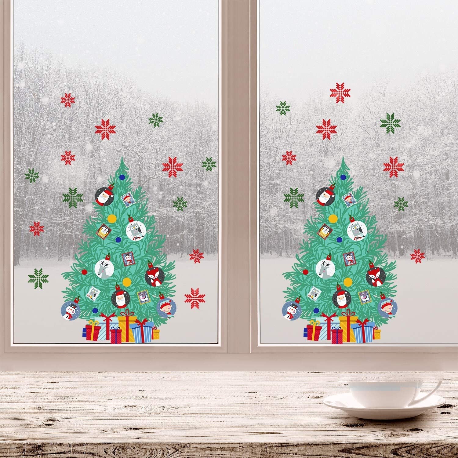 Christmas Tree Snowflakes Wall Sticker Nursery Gift Green Modern Contemporary