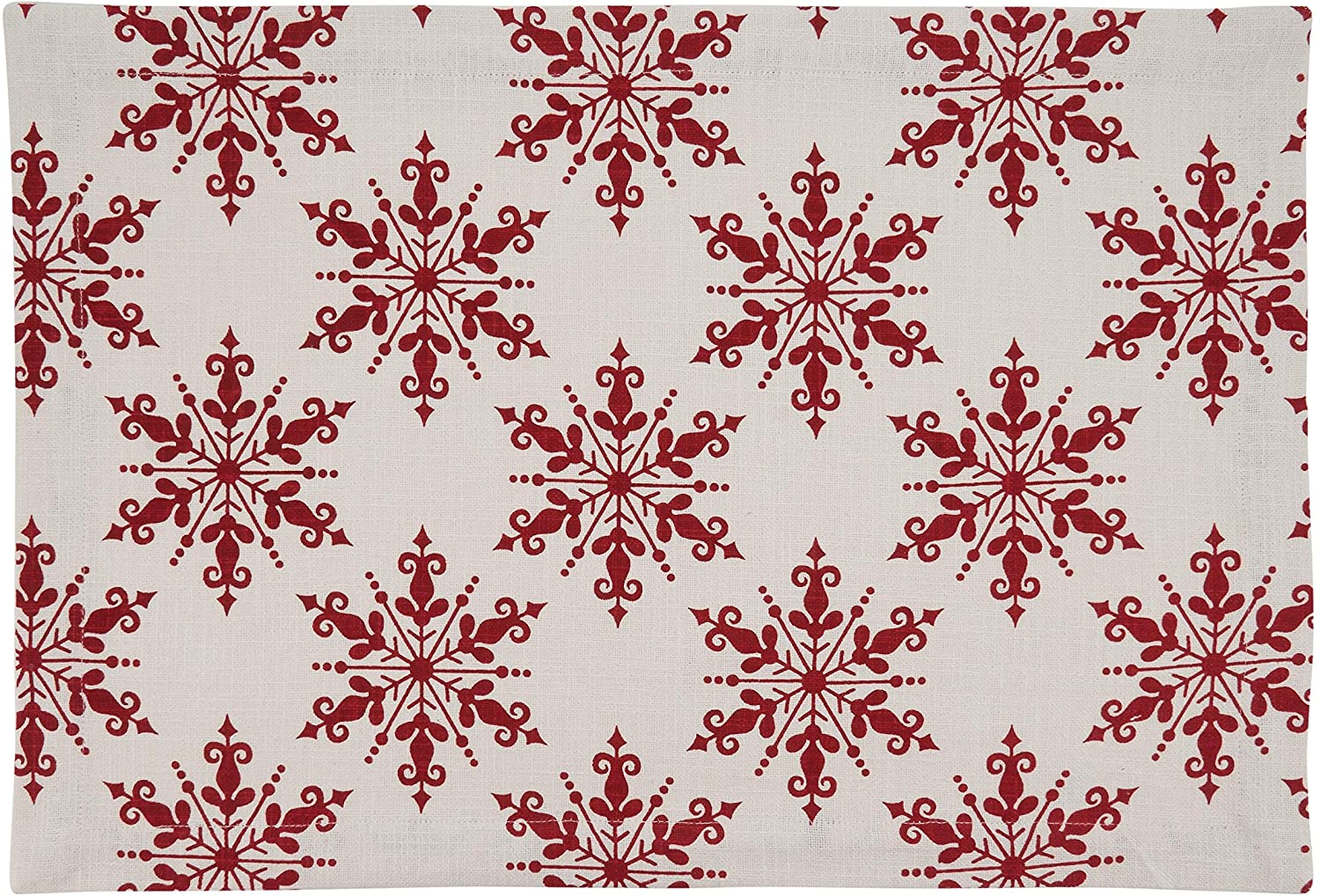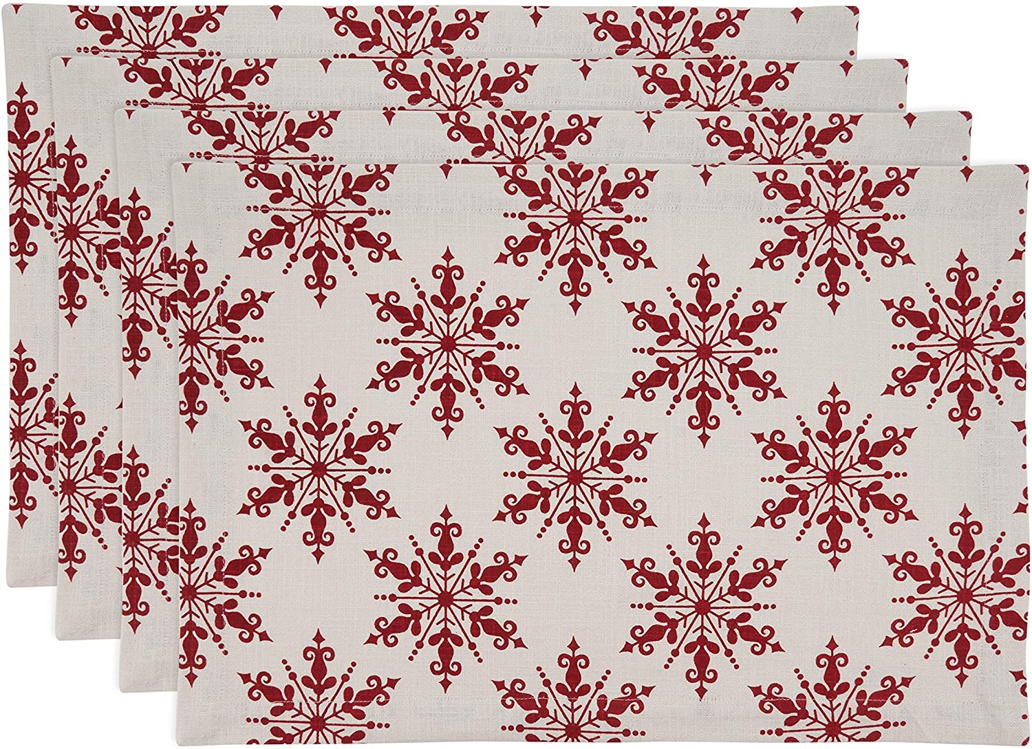 Cotton Placemats Snowflake Design (Set 4) Red Oblong