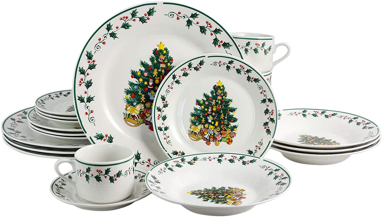 Cozy Christmas Tree Fine Ceramic 20 Piece Decorated Dinnerware Set