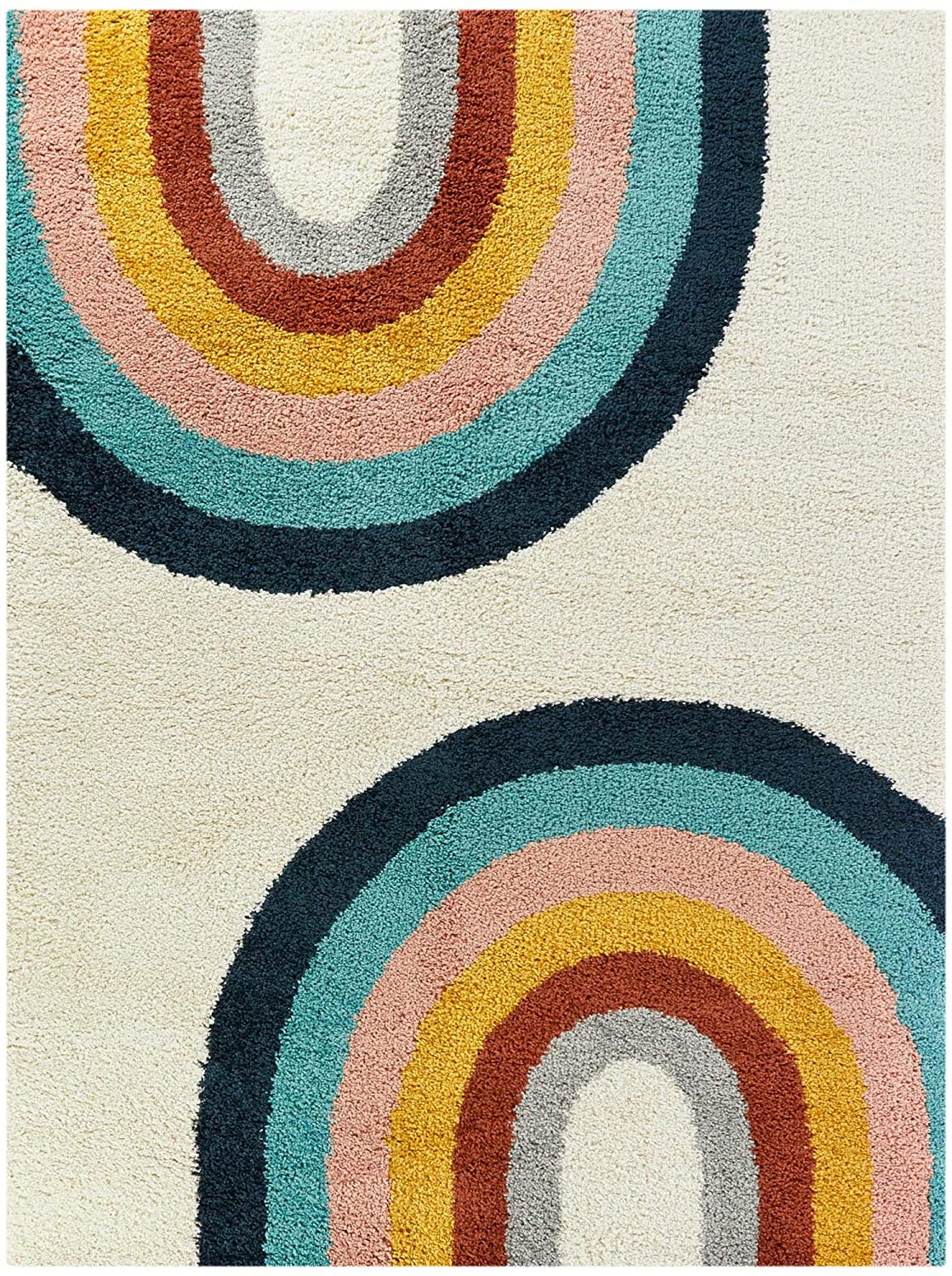 Double Rainbow Kids Area Rug 5'3" X 7' Blue Cream