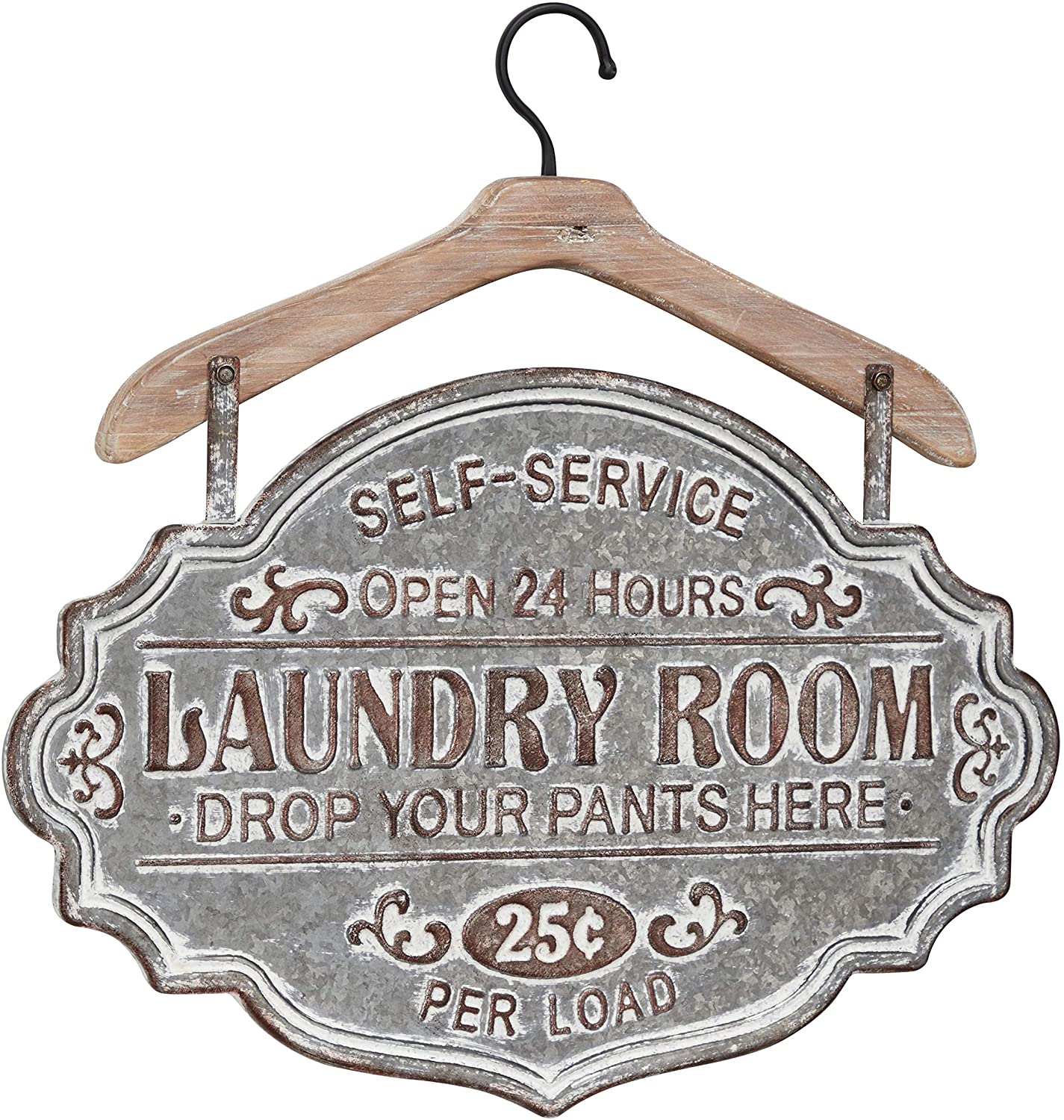Farmhouse Whitewashed Wood Silver Metal Wall Laundry Room Sign 22"