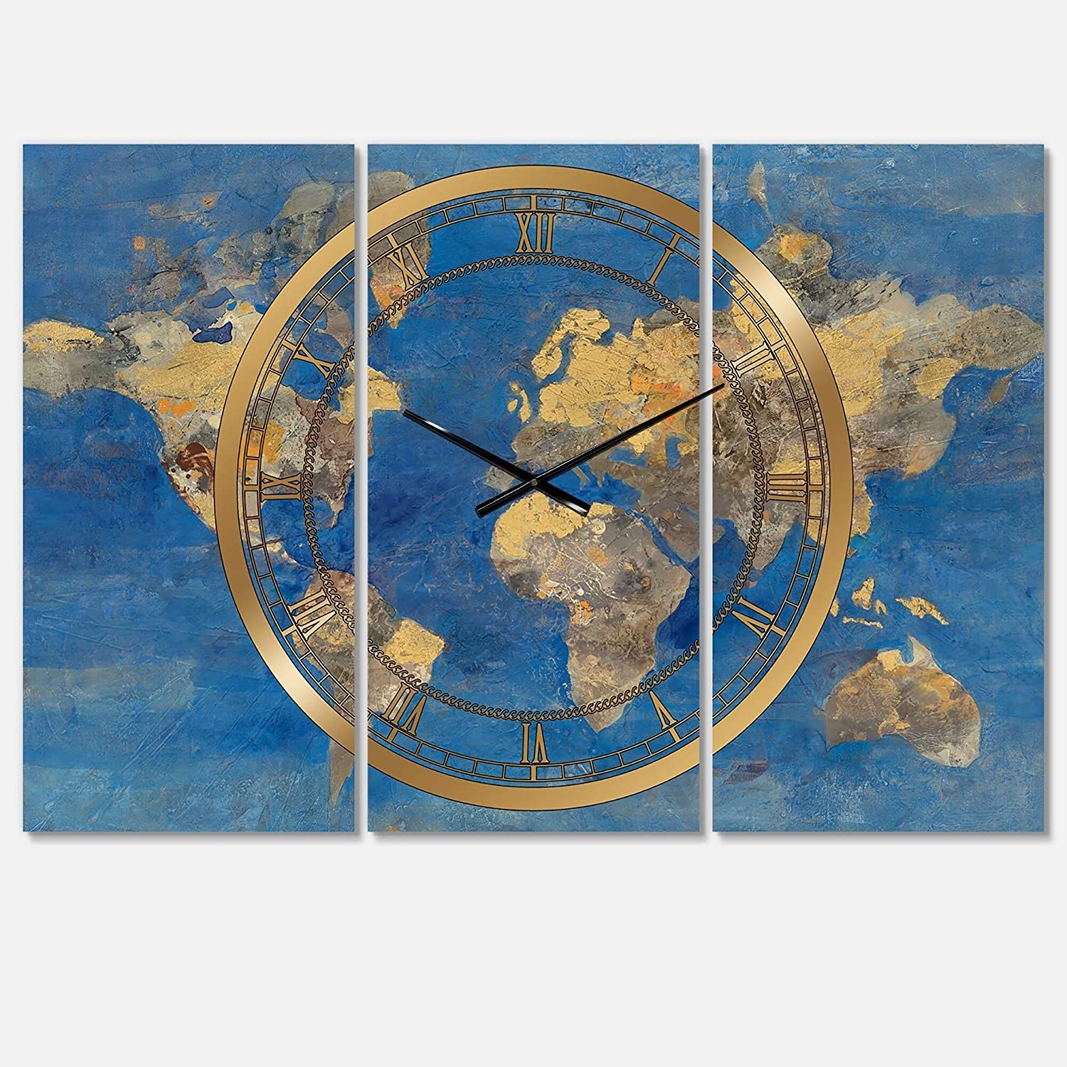 Golden Glam World Map' 3 Panels Oversized Wall Clock 36