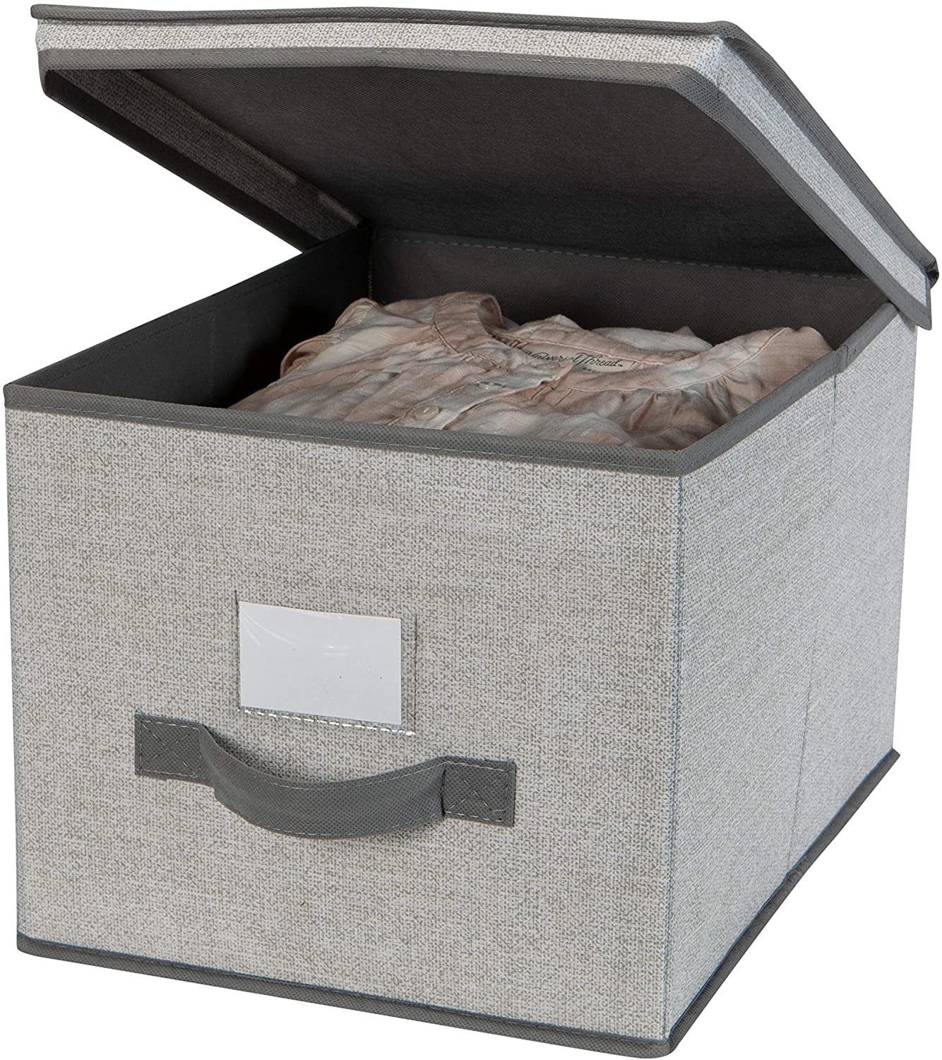 Large Storage Box Grey 12"x 16"x 10" Fabric Textured - Diamond Home USA