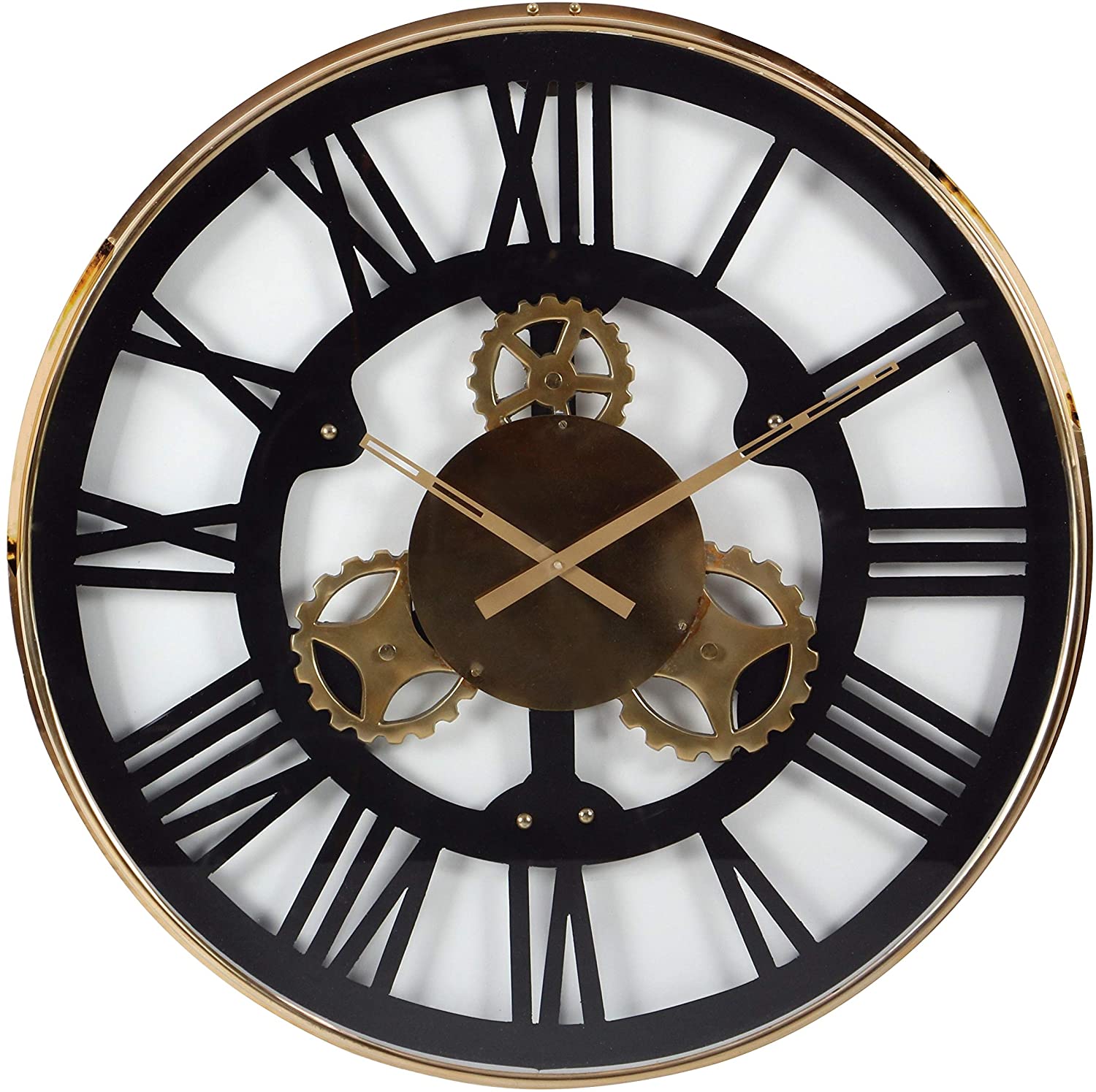 Stainless Steel Wall Clock Black Industrial Round Finish Roman Numeral