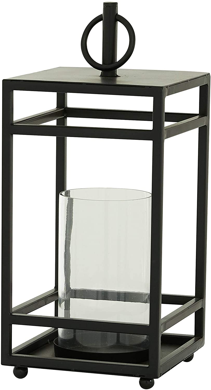 Tall Rectangular Black Metal Lantern Round Glass Center 8 25"
