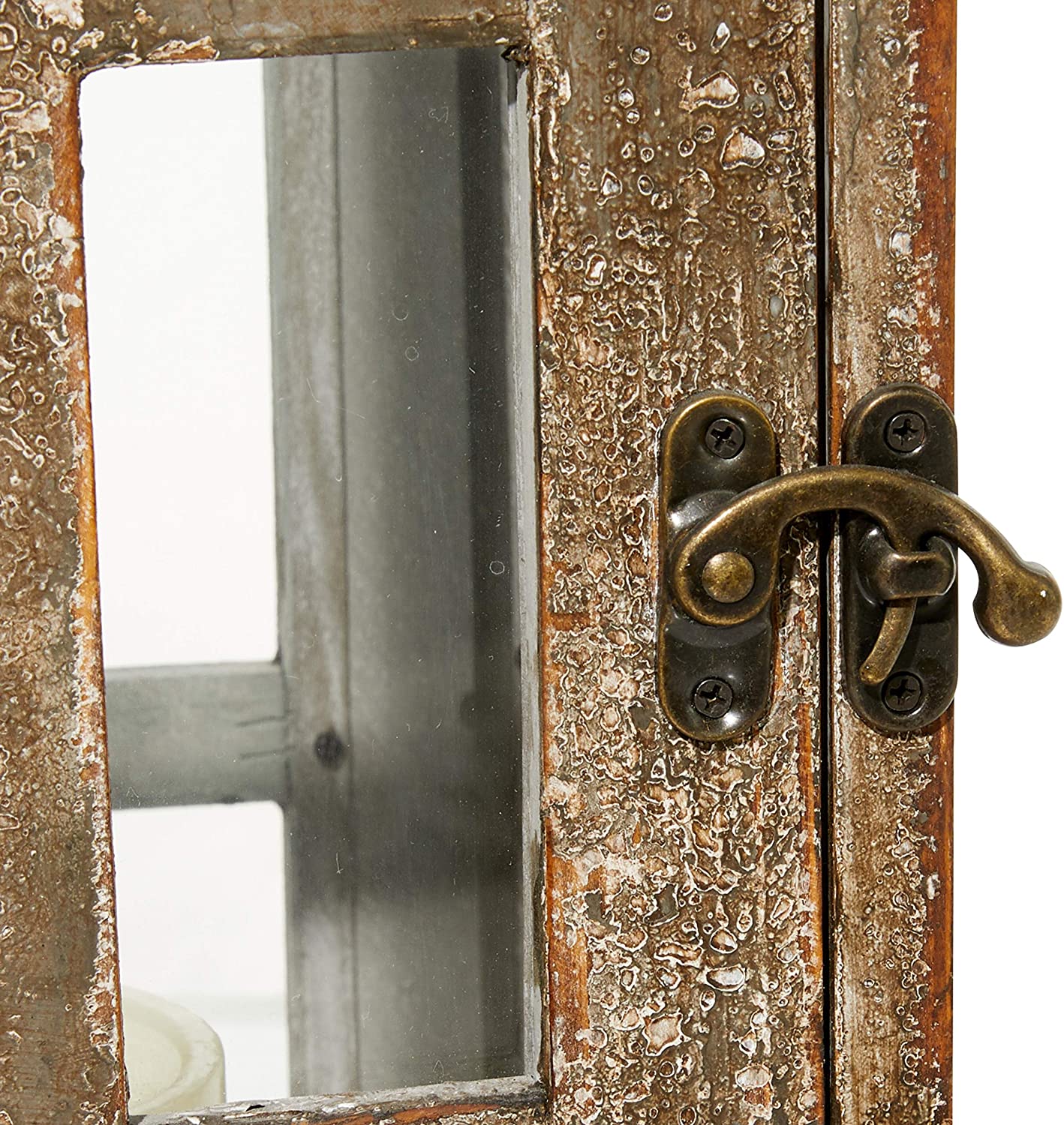 • This is a two-piece candle lantern set. Distressed whitewashed exterior gives off a rustic vibe. Each lantern can hold one small pillar or votive candle. Each piece opens via a door that locks with a latch. Design/Look : Rustic. Material : Wood. Type : Lantern