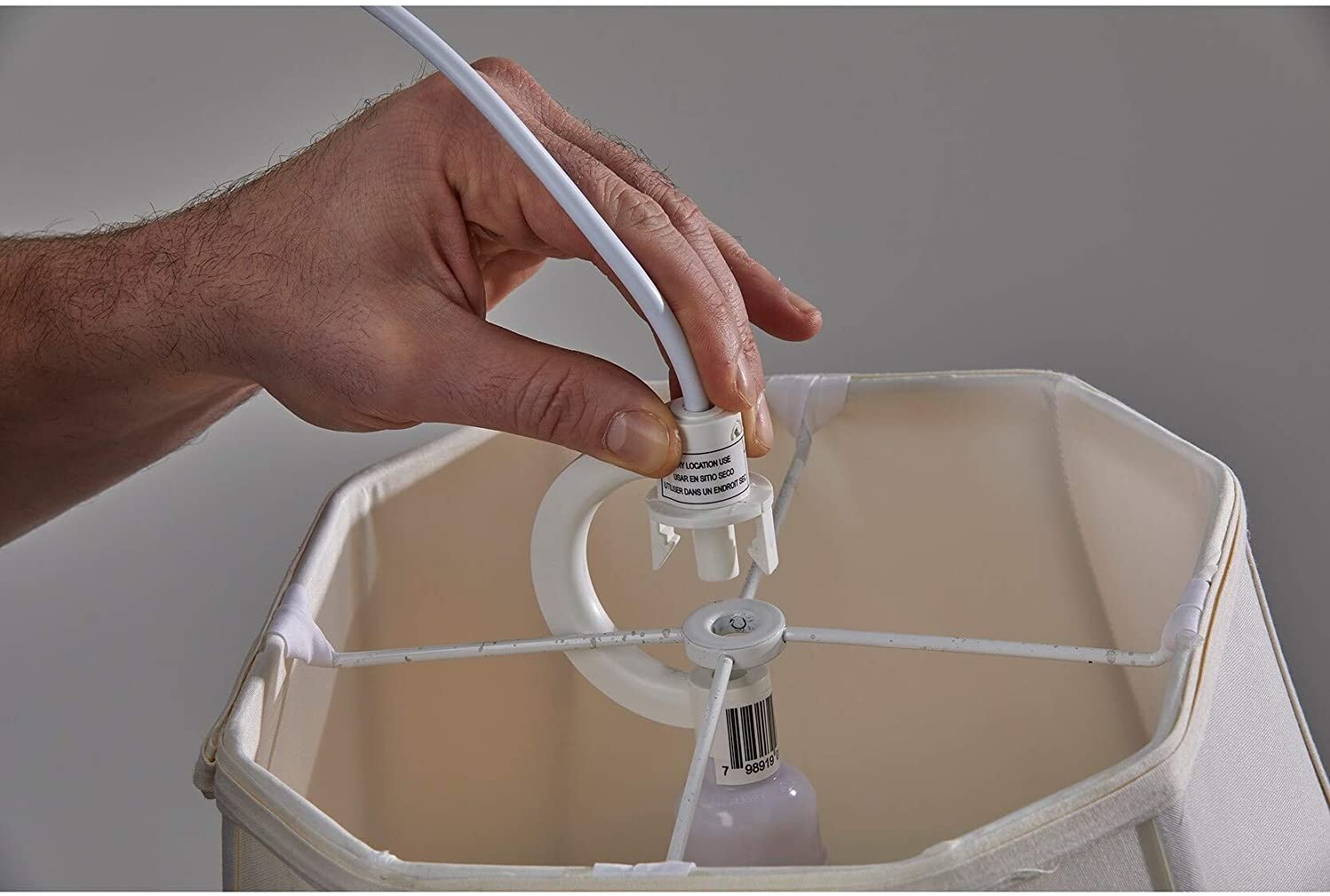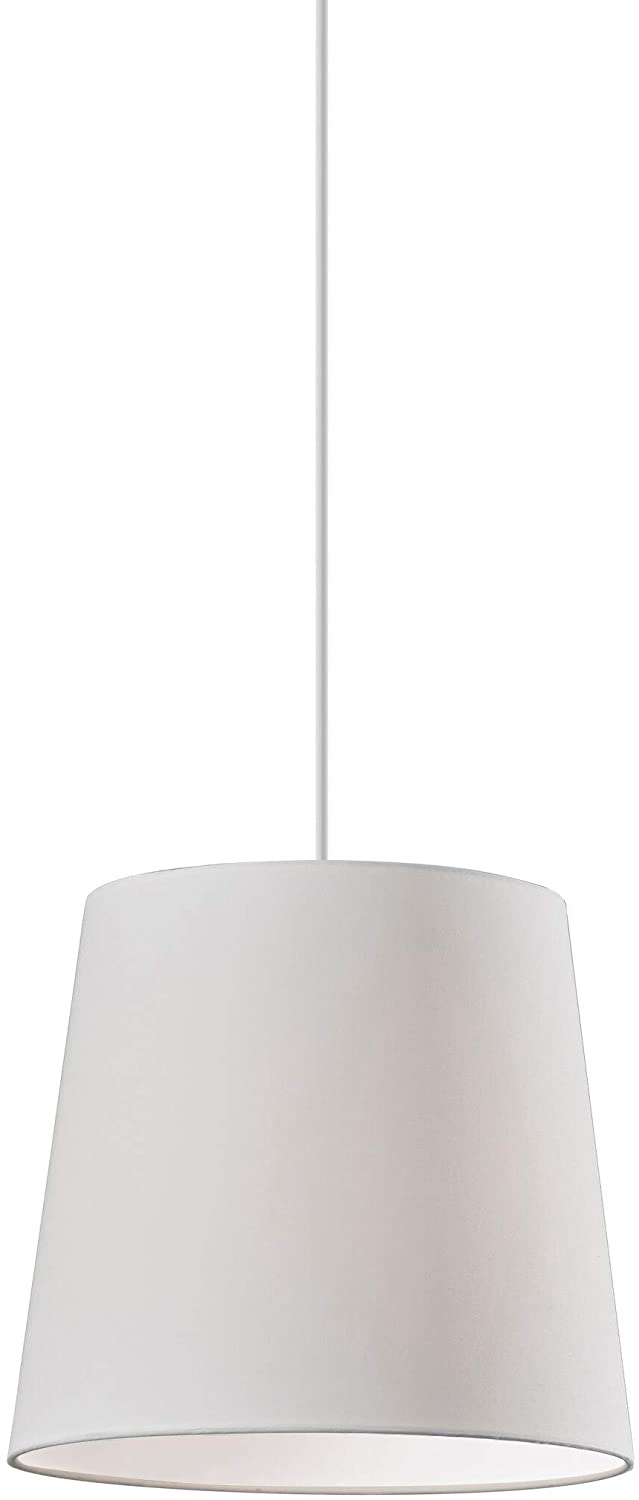 • White Fabric Tapered Drum Shade. Light measures 13"D x 13"W x 12"H. On/Off In-Line Switch. 15 Foot, White Cord w. Plug. 12-inch Overall Height. 100W Bulb (Not Included). Product Size: 13.0 In. X 13.0 In. X 12.0 In. Fixture design : Drum. Shade material : Fabric. Switch type : In-line. Assembly : Assembled. Color : White. Exact number of lights : 1. Material : Fabric. Light bulb type : Incandescent. Light direction : Downlight. Metal finish : Painted