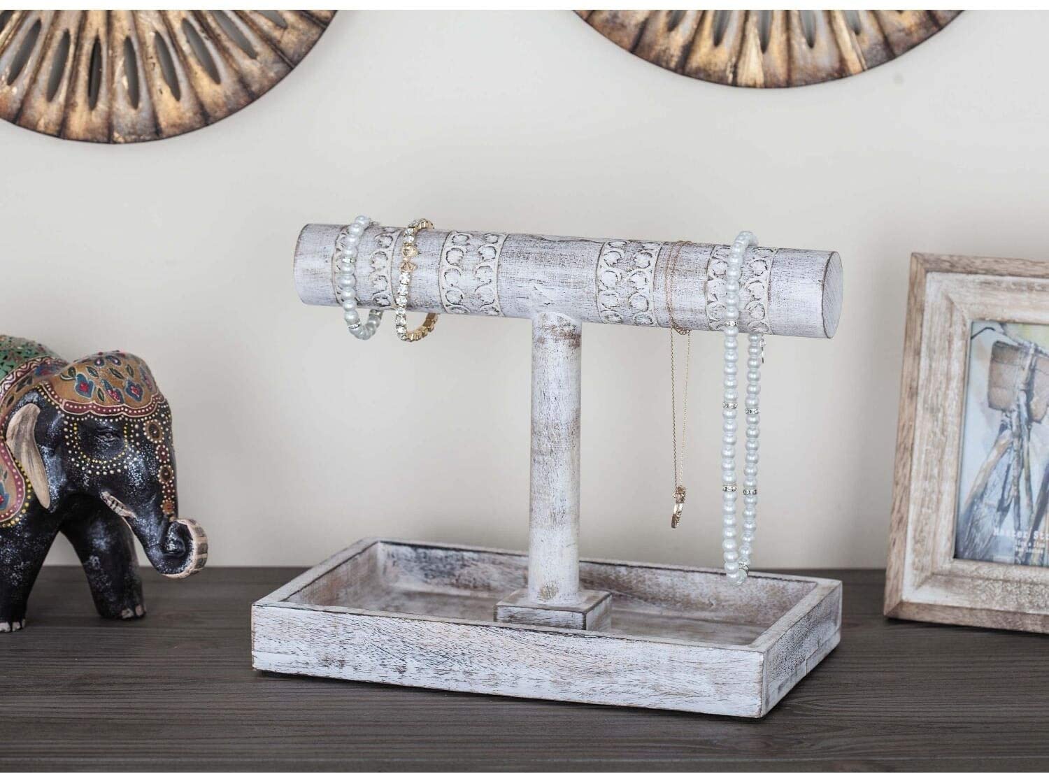 Wood Jewelery Holder 12 Inches Wide 10 High White Rustic