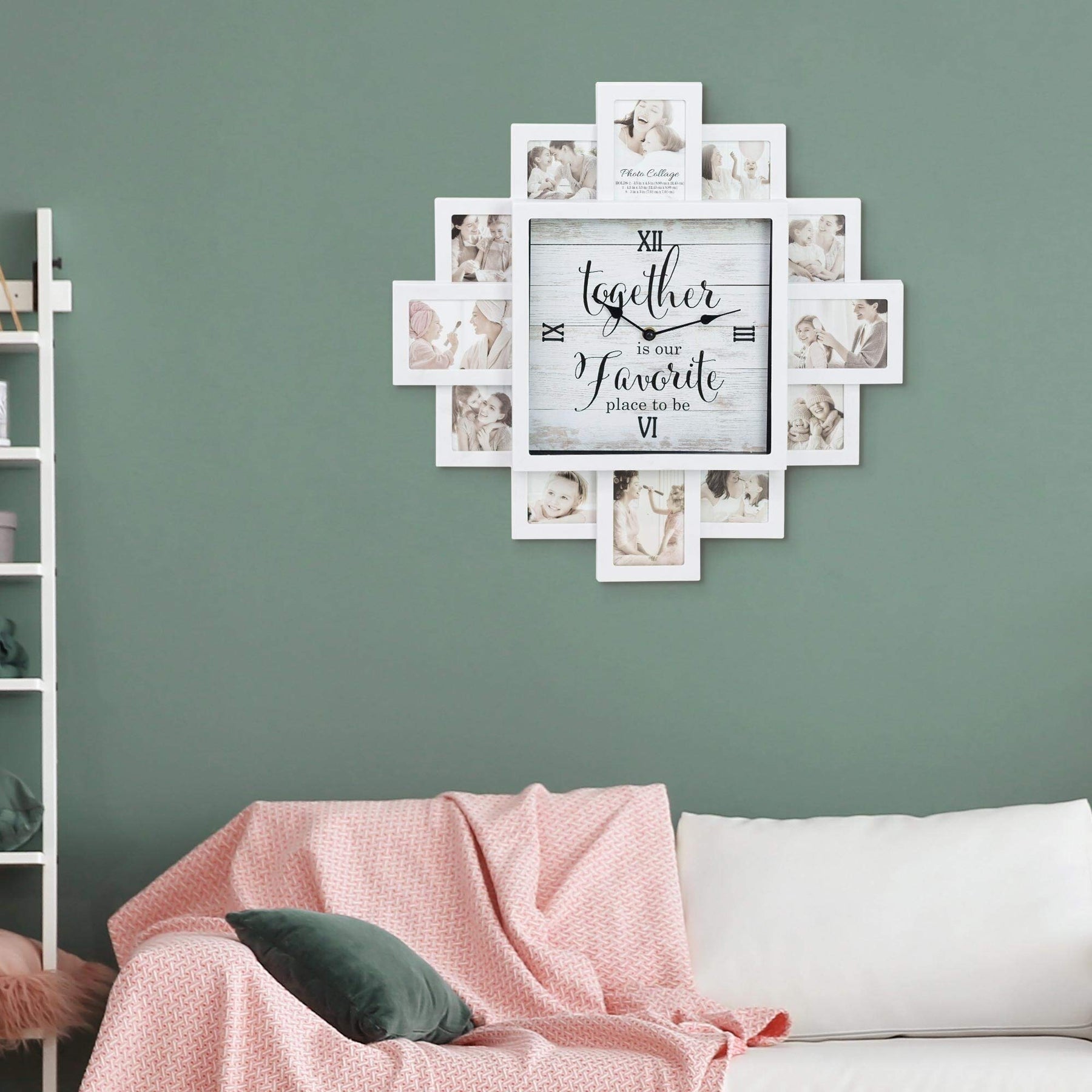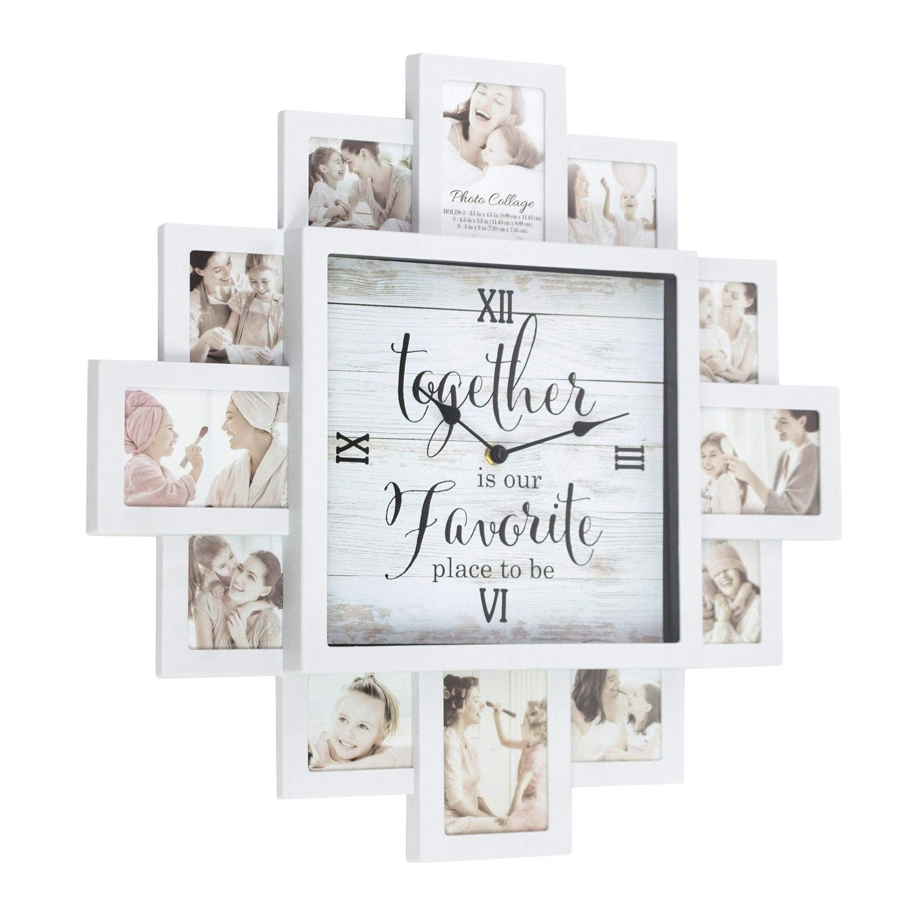 White Farmhouse Shabby-Chic Together Picture Frame Collage Wall Clock Plastic