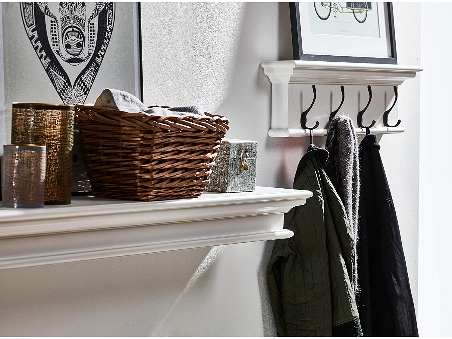 White Mahogany 4 Hook Coat Rack Modern Contemporary Nautical Coastal