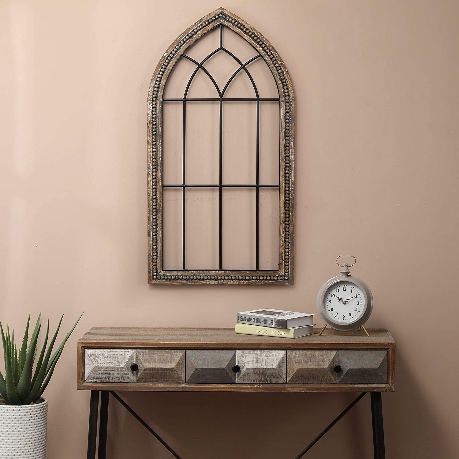 Wood Metal Cathedral Wall Decor Black Brown Traditional Includes Hardware