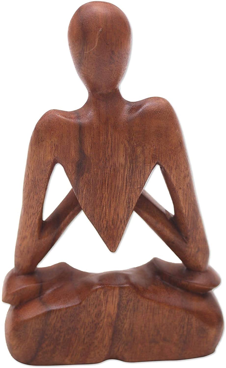 • An abstract figure sits in a full lotus position in this charming wood sculpture from Bali. Originating from ancient India, the lotus posture is said to encourage breathing properly which can help calm your nerves. Eka presents the serene design, which is hand carved by local artisans from suar wood and finished naturally. Color - Brown Dimension - 7. 75" H x 4. 7" W x 1. 4" D Weight - 0.